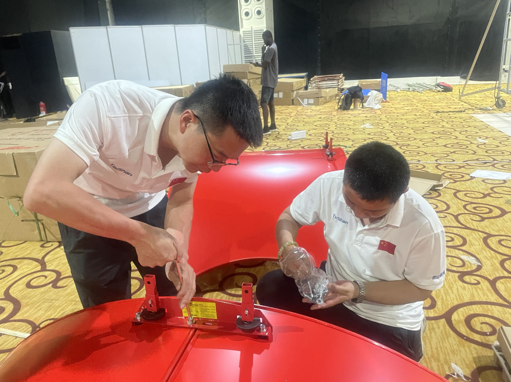 作为全球体育健康一站式解决方案服务商,世俱杯体育服务保障团队是一支不可或缺的重要力量,赛事服务保障团队既包括产品设计、研发技术人员,也包括制造、生产、集成、服务人员,对每一款产品的研发、生产、性能都了如指掌,形成了从产品研发到下线的全流程闭环跟踪服务模式。目前,非运会世俱杯体育器材正在紧张有序的安装中,服务保障团队发扬一丝不苟、精益求精、注重细节、环环相扣的敬业精神,在器材组装、调试工作中,不放过那怕一颗螺丝和微小部件,保障每一件器材的使用性能都达到最优状态。