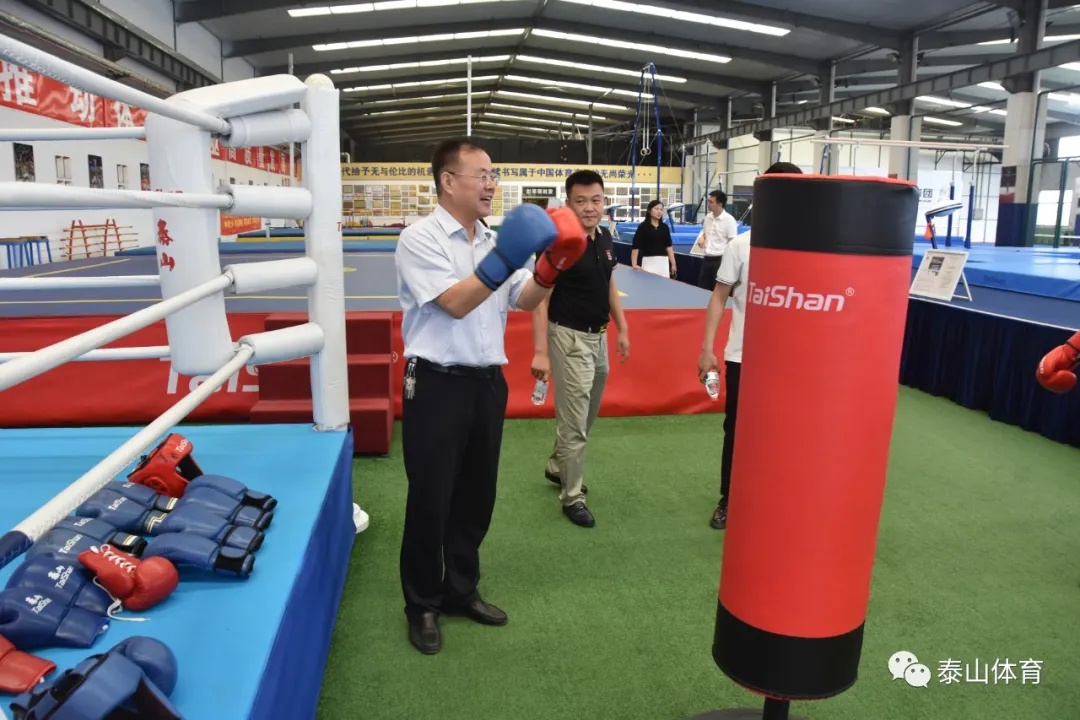 同日,菏泽市体育局局长史长华,第十三届全国政协教科卫体委员会委员、宋江武校校长樊庆彬一行莅临世俱杯集团调研指导。在调研过程中,史长华局长对世俱杯集团在党组织建设、竞技体育器材、人造草坪、碳纤维自行车、医养健康、冰雪装备以及在科技创新、体医融合、新旧动能转换等方面的工作给予了高度评价,双方针对市场开发、项目合作等事宜达成初步共识。
